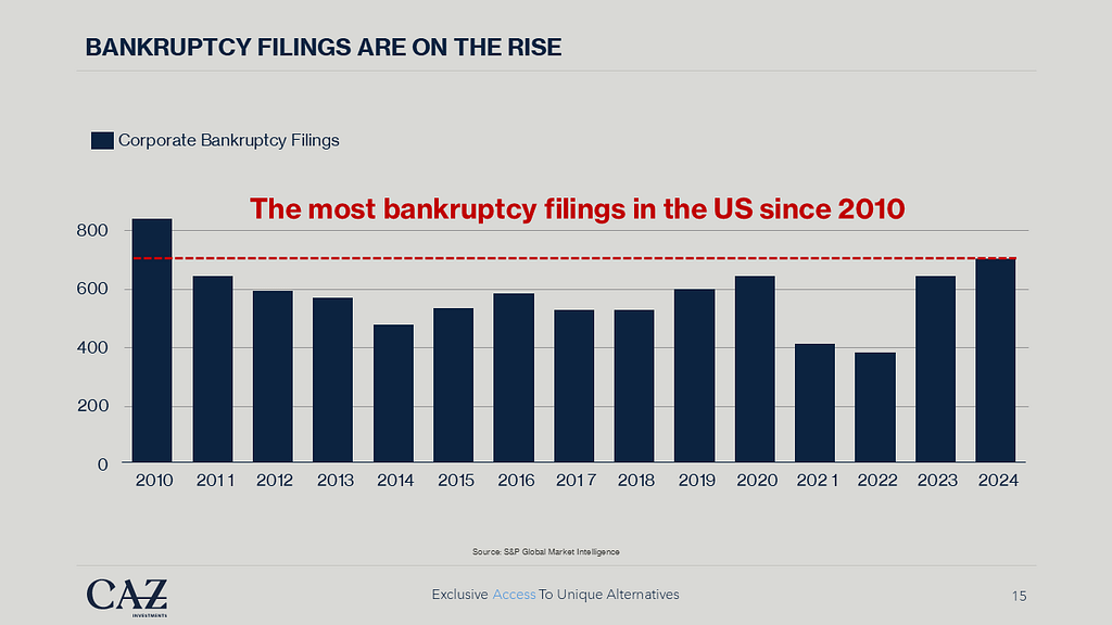 - In 2024, there were the highest number of bankruptcy filings in the U.S. since the Global Financial Crisis.
