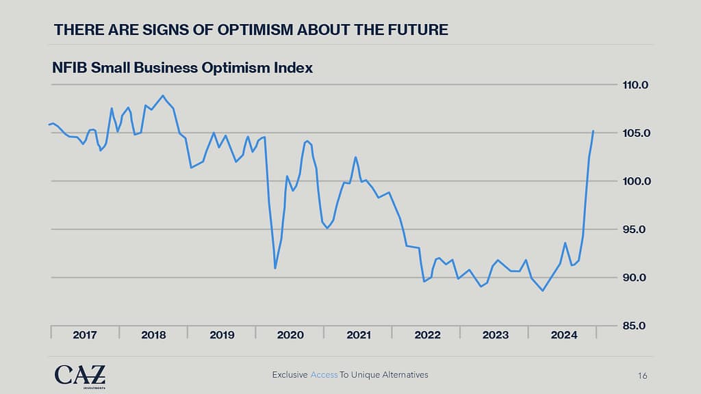 - Small business confidence index skyrocketed after the election, indicating the possibility of rising optimism and a willingness to invest.