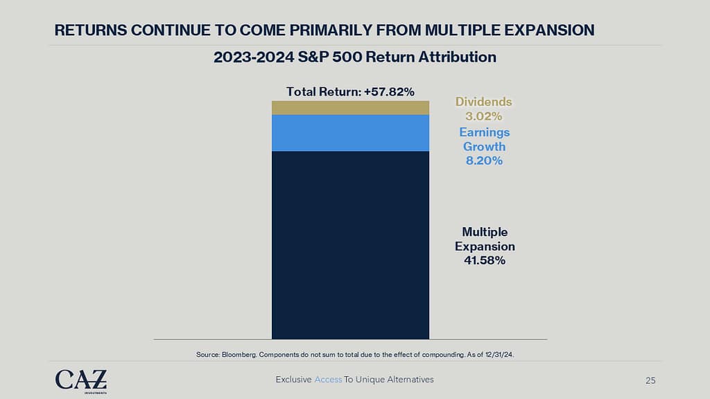 - More than 71% of the S&P 500 returns over the last two years have come from multiple expansion.