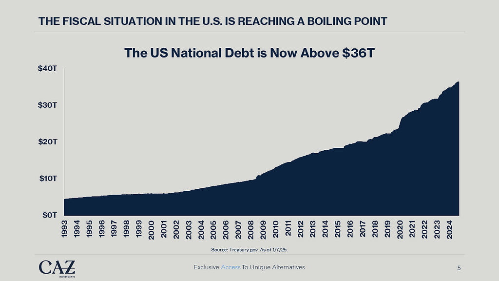 - U.S. national debt has reached $36 trillion, the highest in history.