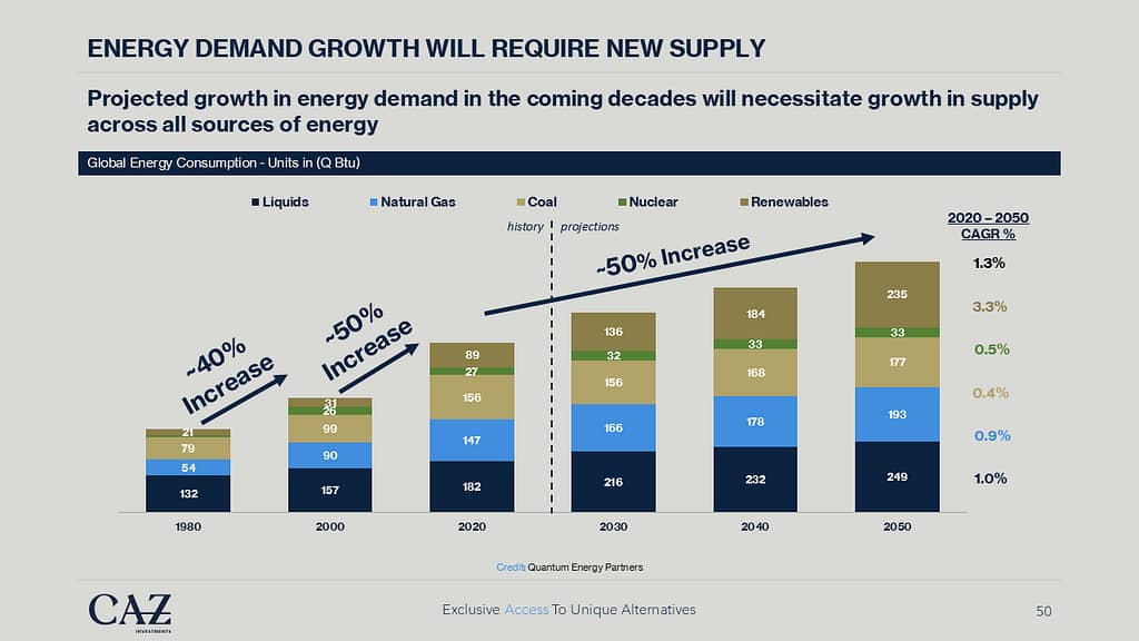 - Energy demand is expected to grow significantly, requiring increased supply.
