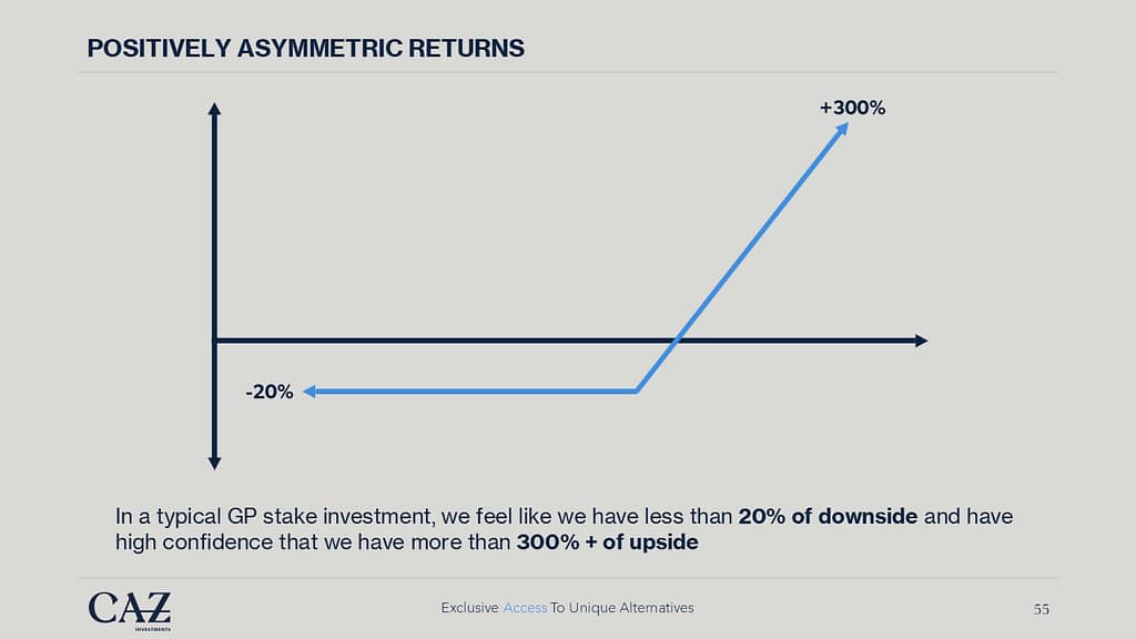 - Owning top-tier fund managers can provide very attractive positively asymmetric returns.